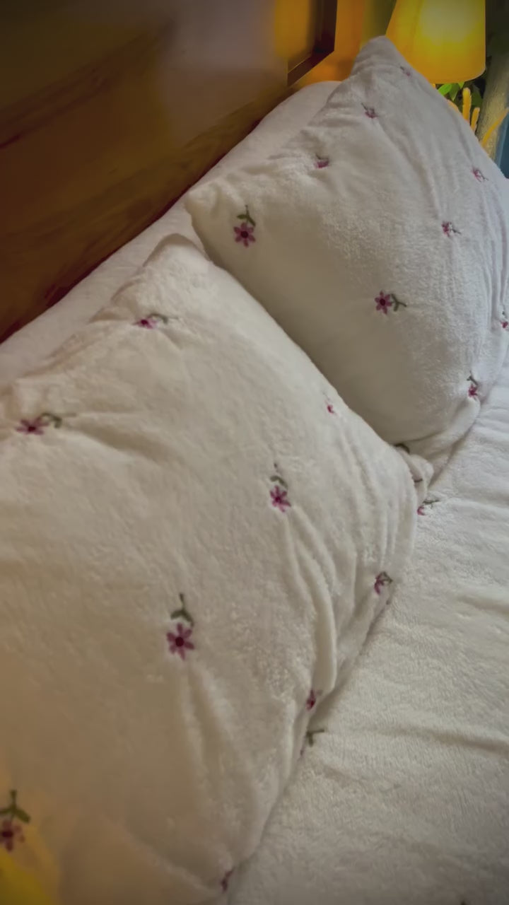غيري مود غرفتك ولمسة سريرك مع دفاية "بلومي". تصميم القلوب الرقيق مش بس شكل، ده إحساس بالراحة والاحتواء. معمولة من خامات شتوية معالجة عشان تديكي "دفا فوري" من أول لحظة تلمسيها، بنعومة تشبه السحاب.